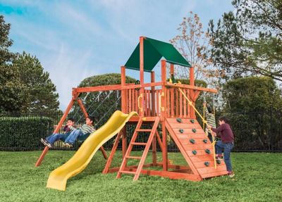 Tree Frogs™, America’s Best Value In Swing Sets™, offers an array of swing set styles and accessories to grow and change with your family’s needs. Check out our Tree Frogs™ Swing Sets and see our award-winning designs. Our Tree Frogs “Fungineers” are ready and available to help every day of the week including Saturday & Sunday. They’ll be sure you have all you need to create the play system of your dreams. As well, we can recommend a professional installer in your area so that your family doesn’t have to work too hard to have fun.